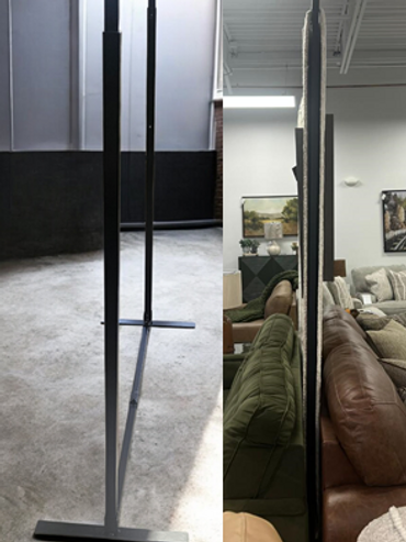 Every Morgan Creek Rug Display incorporates a designed base foot that allows the user to set the racking against a wall with only 2"clearance needed without sacrificing stability.